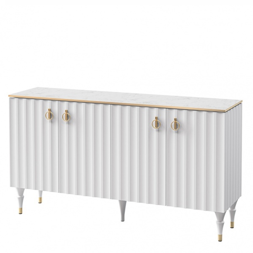 Консоль четырёхдверная с белым рельефным фасадом Expanses of Beauty Белый Золотой Белый Мрамор Bianco в Брянске | Loft Concept
