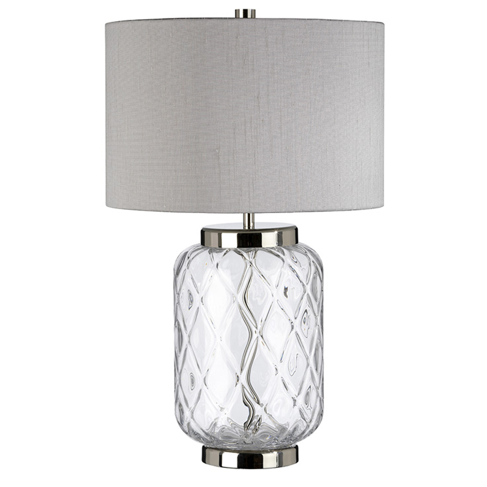 Настольная лампа с цилиндрическим абажуром и прозрачным стеклянным основанием Quintiesse Никель Темно-синий Прозрачное Стекло Серый в Брянске | Loft Concept