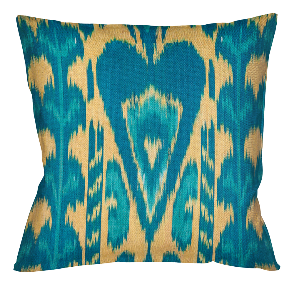 Подушка декоративная бирюзовое сердце Ikat Pattern