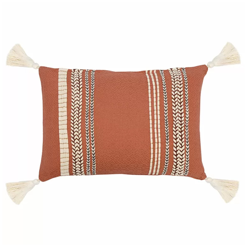 Подушка декоративная с вышивкой и кисточками Ethnic mix Терракотовый Бежевый в Брянске | Loft Concept
