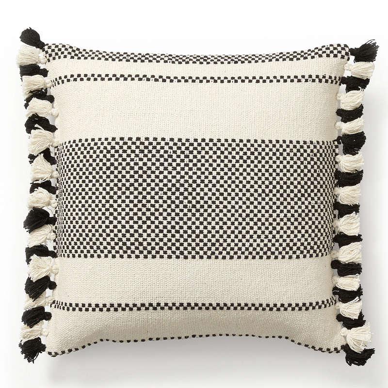 Подушка декоративная черно-белый хлопок с кисточками