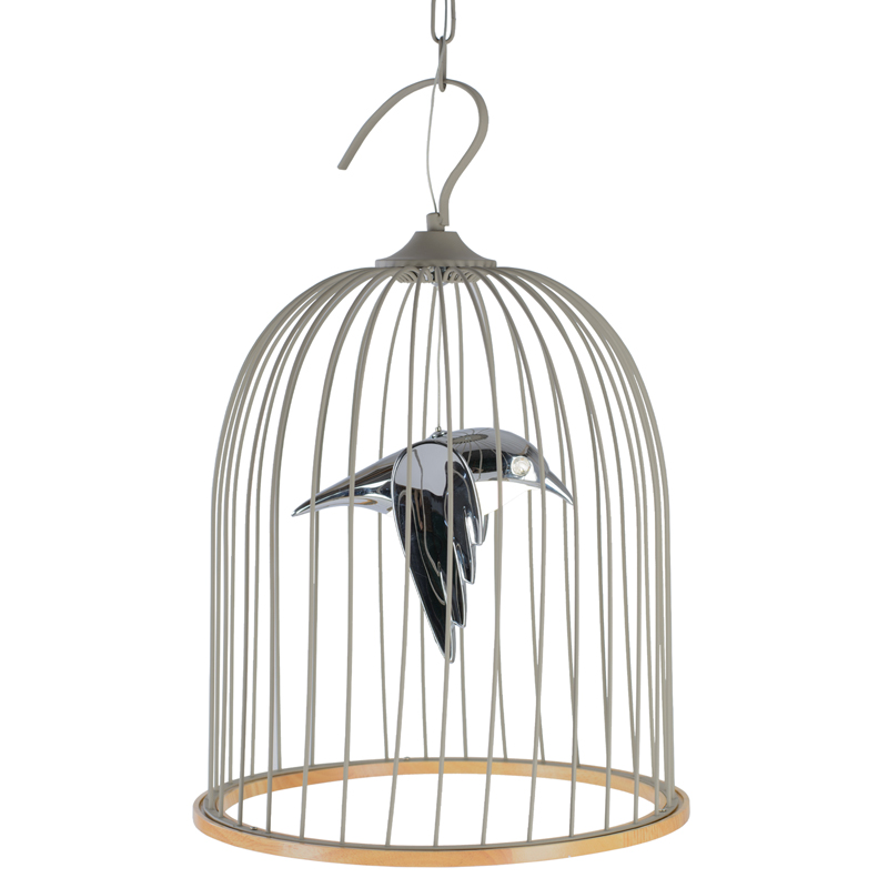 Подвесной светильник Bird in Cage Pendant Серый Хром Древесина в Брянске | Loft Concept