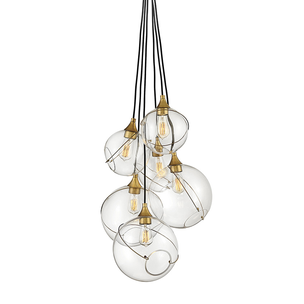 Подвесной светильник с шестью прозрачными стеклянными шарообразными плафонами Hinkley Латунь Прозрачное Стекло в Брянске | Loft Concept