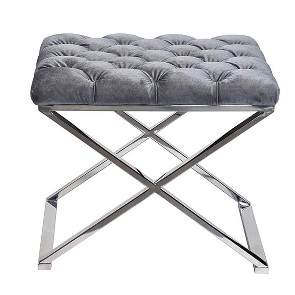 Пуф велюровый серый с каретной стяжкой Perennially